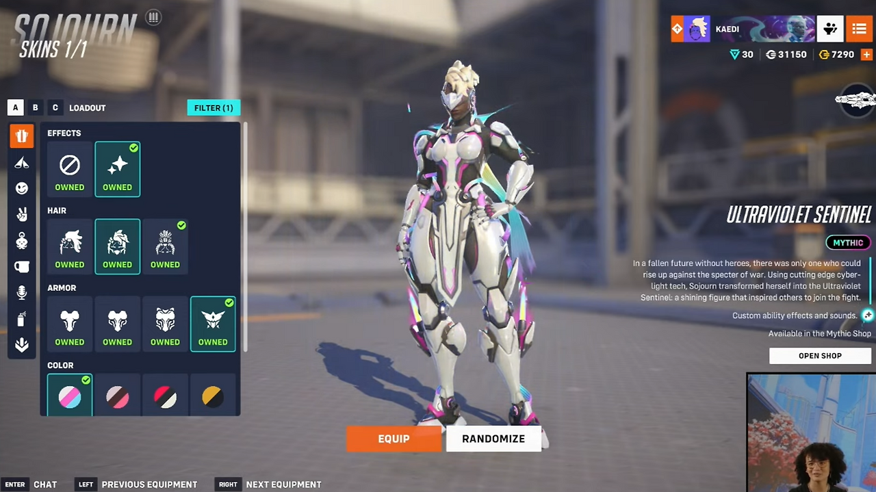 New Sojourn Mythic Skin Ultraviolet Sentinel has a variety of effects added. pic.twitter.com/3fQBmc6gE0
