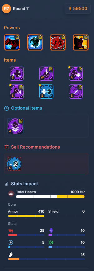 이전 라운드에서 [어둠의 건틀릿]을 사지 않았다면, 이번에 [뤼스퉁 폰 빌헬름] 또는 [오군디무 감소장] 중 필요 없는 쪽을 판매하고 [어둠의 건틀릿]과 [사이버베놈]을 모두 구매하는 것이 좋다. 이는 생존력보다 공격력을 우선시해야 할 만큼 필수적인 아이템이다.
