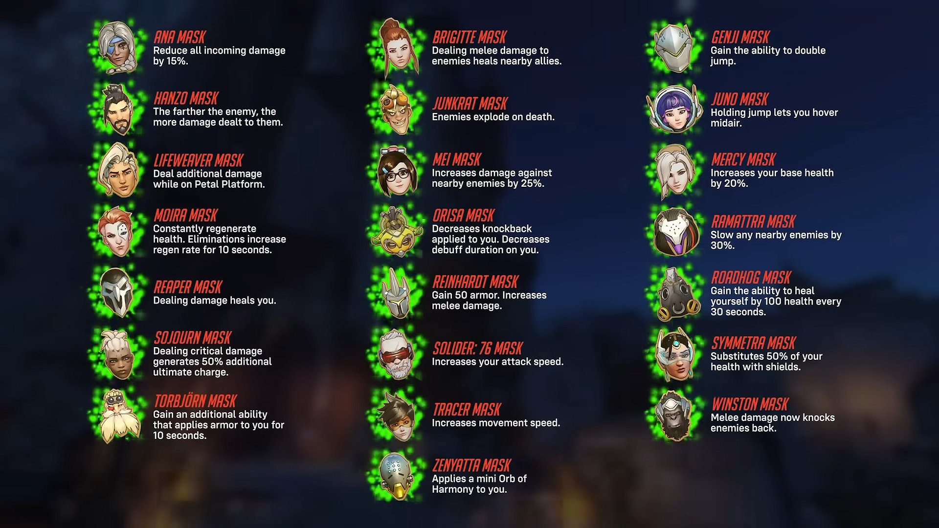 프레야 / 리퍼 / 파라 / 애쉬 / 키리코 / 로드호그 / 바티스트 / 메르시 / 시그마 / 위도우메이커 / 겐지