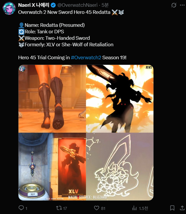 오버워치 2 45번째 신규 영웅 정보