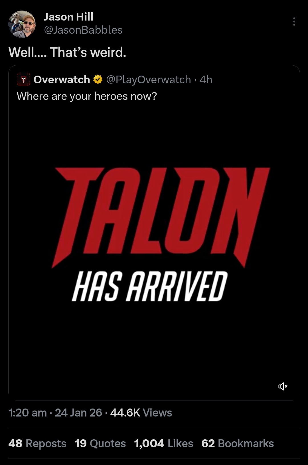 이 디렉터는 과거 오버워치 시리즈의 시네마틱 영상 제작과 오버워치 2 스토리 미션 컷신을 담당했던 인물로, 최근 화제가 되고 있는 탈론 관련된 글을 리트윗에 주목을 받고 있다.